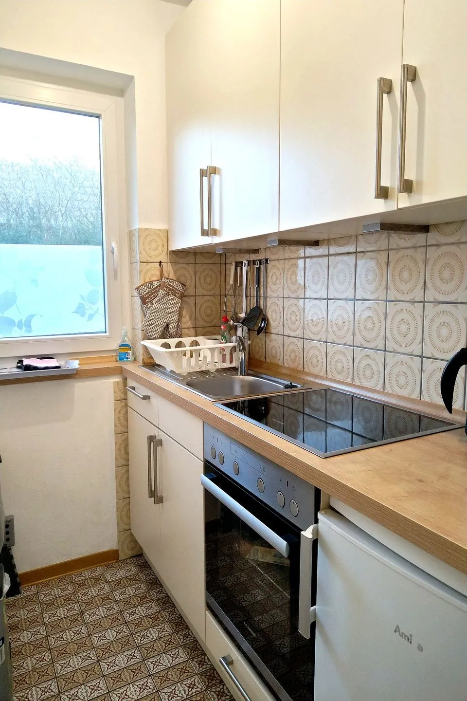 Die Küche ist funktional ausgestattet und bietet alles, was Sie für die Selbstversorgung benötigen – perfekt für gemeinsame Mahlzeiten in entspannter Atmosphäre.