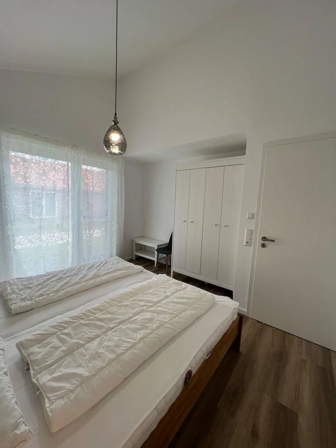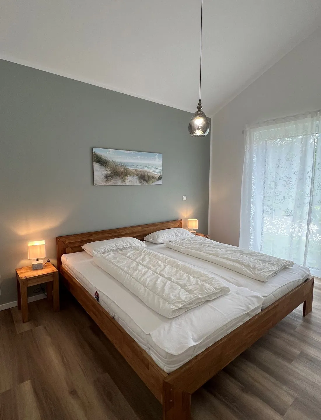 Im Hauptschlafzimmer befindet sich ein großes Doppelbett (200cm x 200cm).
