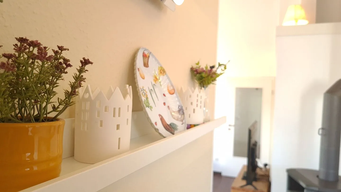 Das geschmackvoll eingerichtete, barrierearme Ferienhaus (ca. 70 m²) empfängt Sie mit einem hellen Flur. Der offene Wohnbereich mit gemütlichem Wohnzimmer (Schlafcouch für 2 Personen), komplett ausgestatteter Küche (Esstisch für 5 Personen, Kinderstuhl) und Kamin lädt zum Verweilen ein. Von hier aus gelangen Sie direkt auf die möblierte Terrasse.