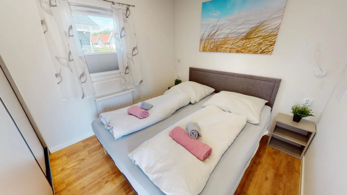 Zwei Schlafzimmer (eins mit einem Doppelbett und eins mit zwei Einzelbetten)