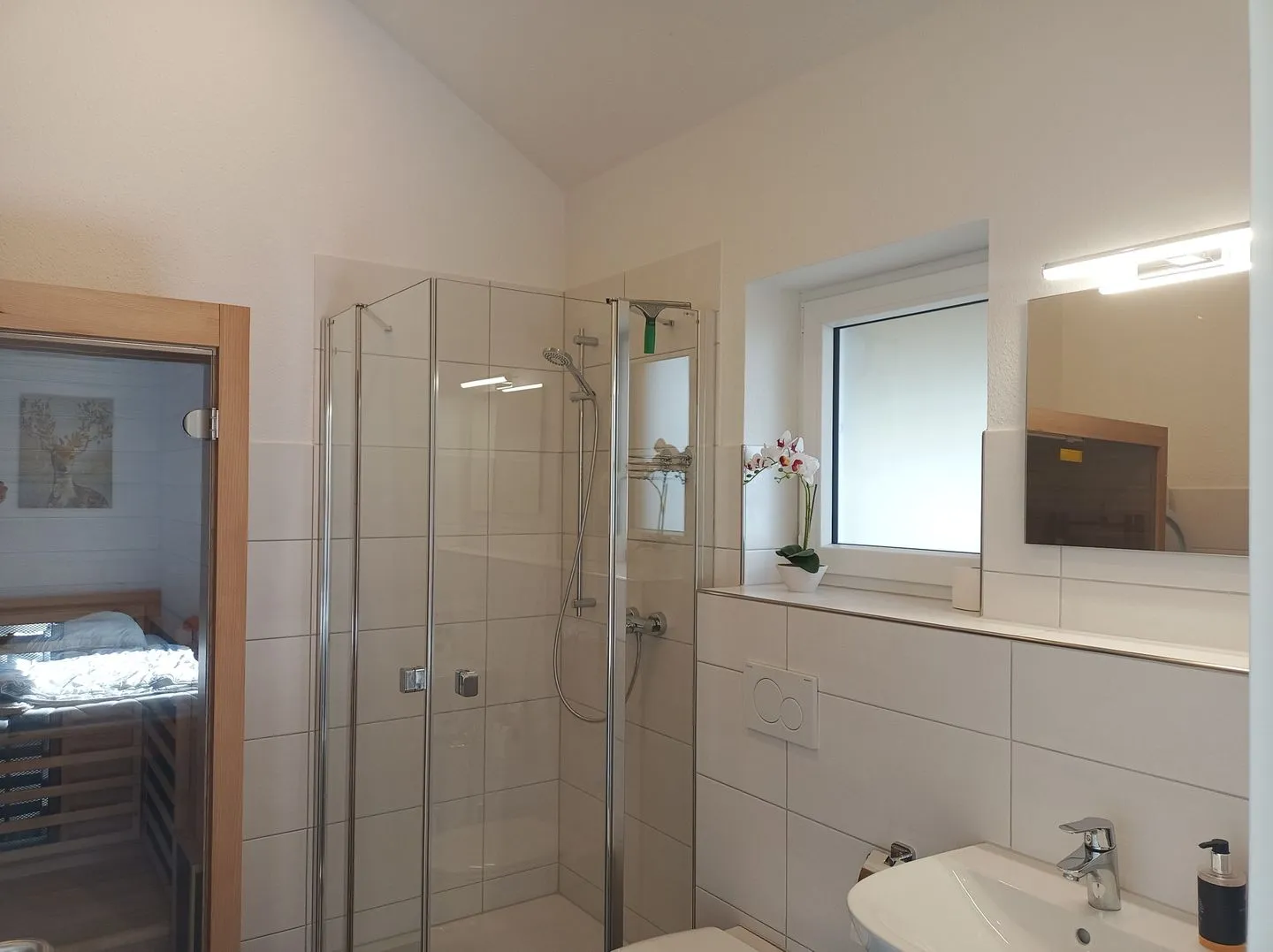 Das Haus verfügt über drei Schlafzimmer. Das Hauptschlafzimmer ist mit einem Doppelbett (180x200) ausgestattet und verfügt über ein modernes Duschbad mit Infrarotsauna ensuite. Das zweite Duschbad ist über den Flur zu erreichen.