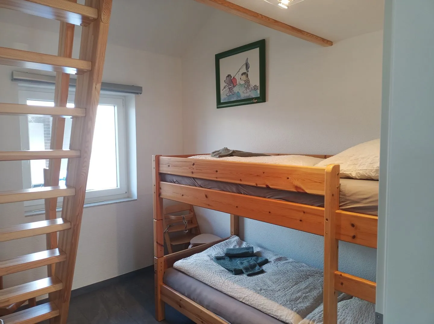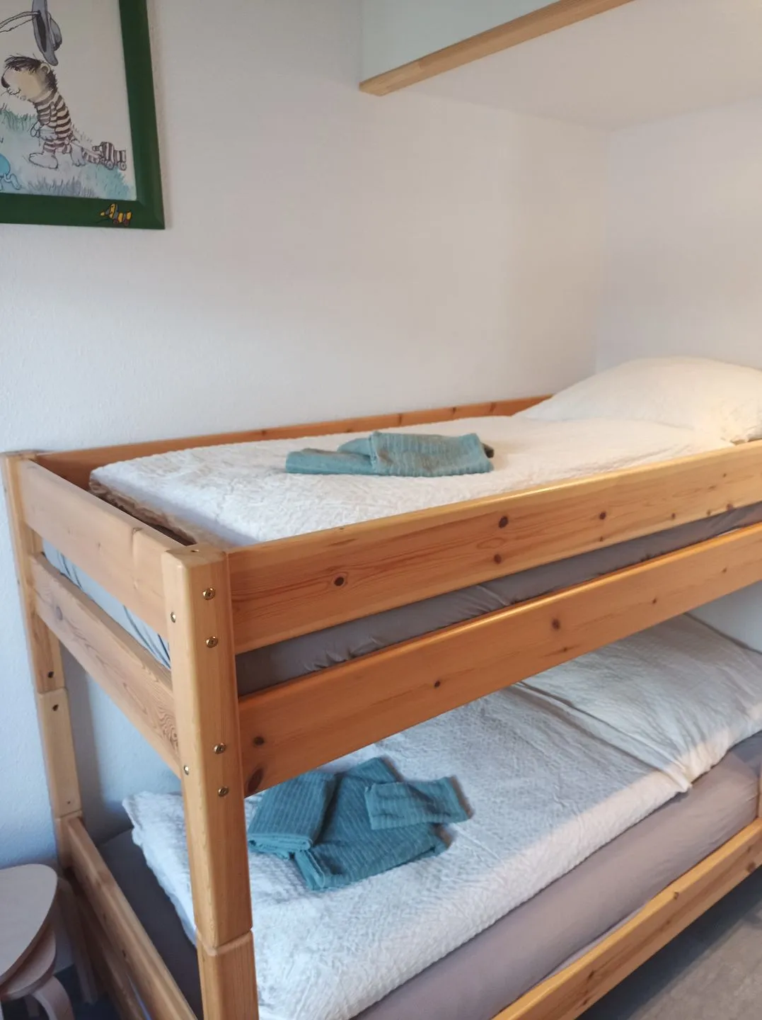 Ein weiteres Schlafzimmer ist mit einen Etagenbett ausgestattet, hier ist der Spielboden über eine Treppe zugänglich. Alle Fenster sind mit Plissees und/oder Verdunkelungsrollos versehen.