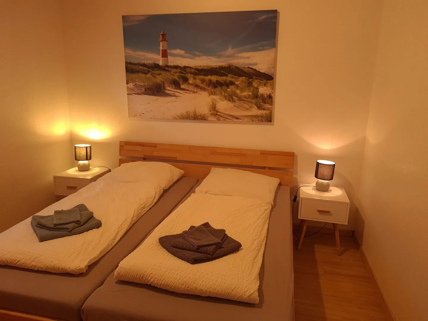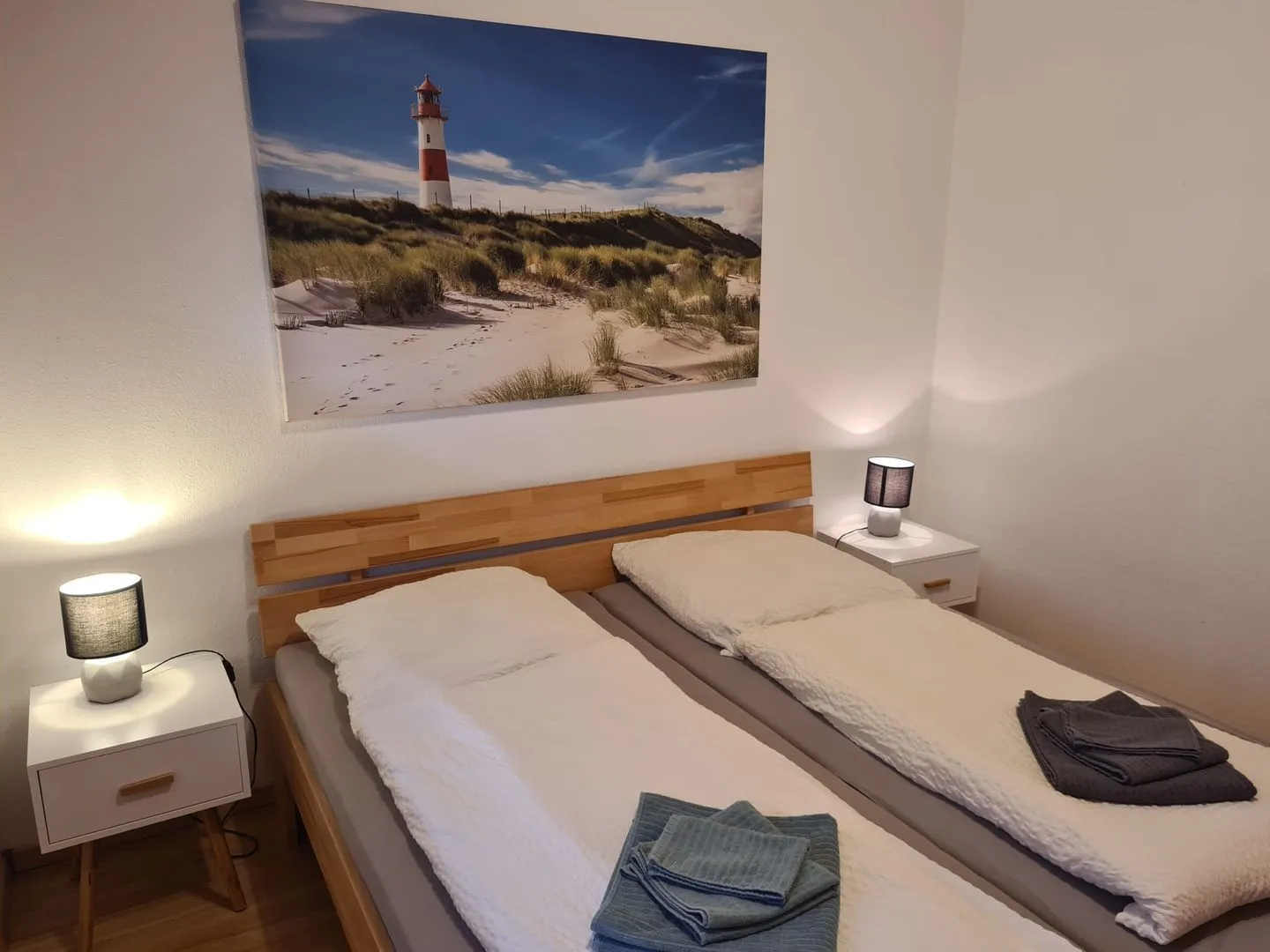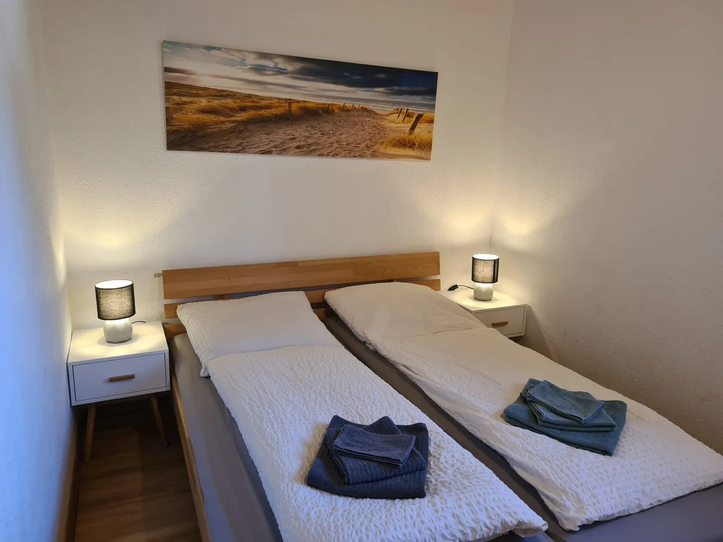 Beide Schlafzimmer verfügen über Doppelbetten ( 1,80 x 2,00m und 1,60 x 2,00m ). Beide Schlafzimmer können mit Rollläden abgedunkelt werden.
