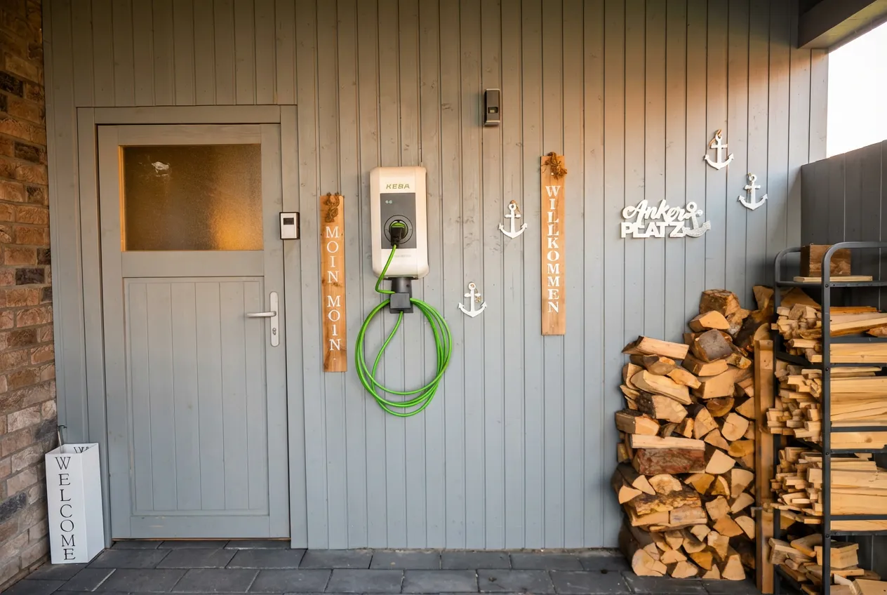 Eine überdachte Terrasse (mit integriertem ausziehbarem Windschutz) lädt zum Verweilen ein. Die kleinere Terrasse vor dem Schlafzimmer verführt dazu, den Sonnenuntergang vor dem Schlafengehen zu genießen. Es gibt 6 Gartenstühle, 2 Liegestühle und für alle Gartenmöbel sind natürlich passende Polster vorhanden. Ein Grill mit Smoker steht für BBQ-Abende bereit. Ein Sandkasten in Form eines Piratenboots bietet Kindern Spaß und Unterhaltung. Es gibt einen abschließbaren Abstellraum für Ihre Fahrräder. Eine Wallbox ist installiert, so können Sie direkt am Haus Ihr E-Auto aufladen. Die Abrechnung erfolgt hierfür direkt über Kreditkartenzahlung.